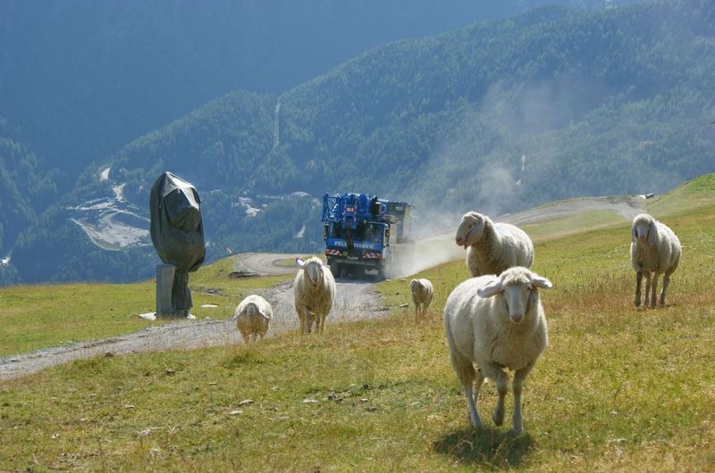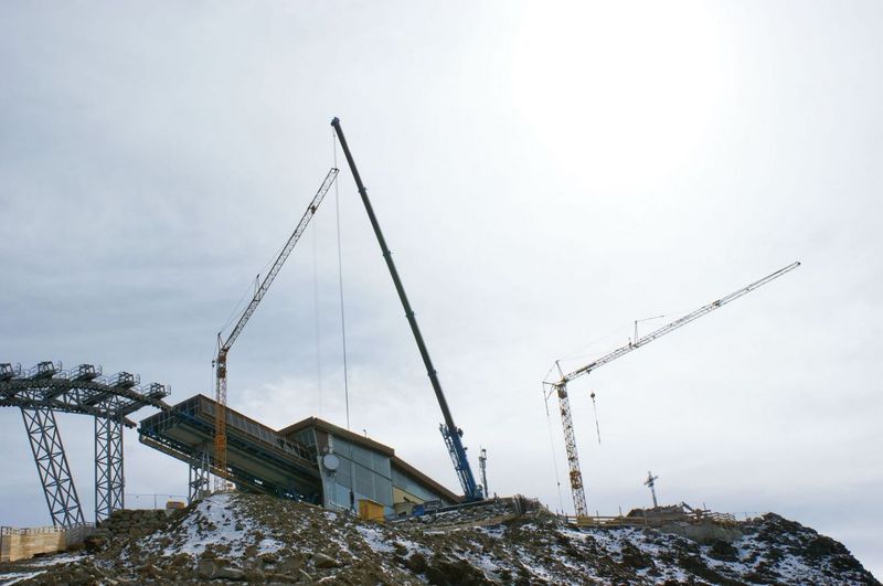Doch auch auf der 2.174 Meter hoch gelegenen Mittelstation reckten sich die Hubgeräte von April bis September in den blauen Himmel. So seien hier, laut Lettenbichler, drei Krane gleichzeitig im Einsatz gewesen: „Einer montierte die Stütze "Eins", der zur Bergstation führenden 3-S-Bahn und die Halle. Zwei weitere Krane, mit maximalen Traglasten von 200 Tonnen, montierten die Einlaufstütze der vom Tal kommenden Umlaufbahn sowie die Seilbahntechnik für die Trassen". Teleskopstapler und Bühnen kamen für diverse Montagetätigkeiten ebenfalls zum Einsatz.