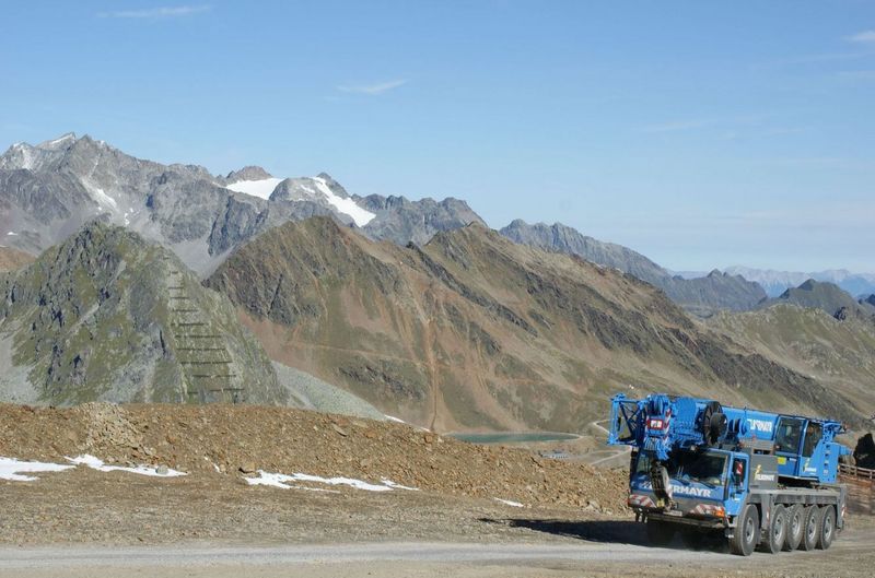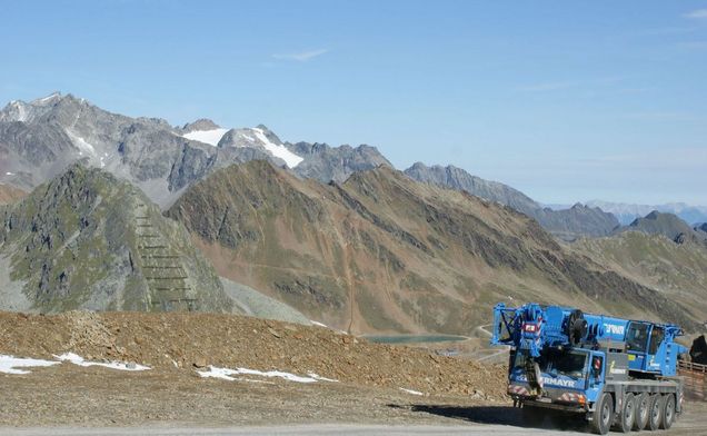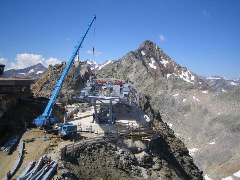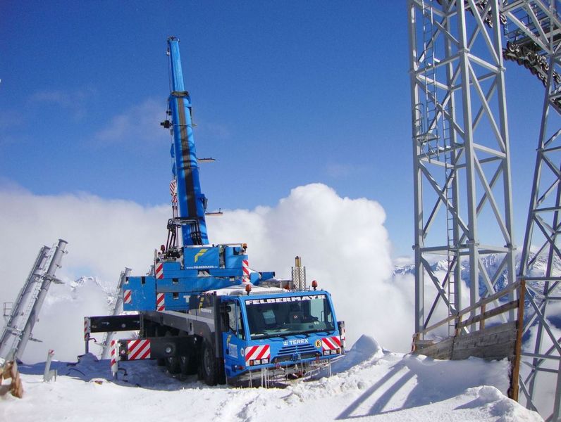 Eine wahrliche Sommerfrische erlebten heuer ein Kranfahrer und sein LTM 1200 auf der Bergstation der Gaislachkogelbahn in Sölden. Zweck des Einsatzes auf 3.050 Metern Seehöhe war die Errichtung der neuen Bergstation. Doch so wie die neue Gaislachkogelbahn als Gesamtes zu den modernsten Europas gehört so gilt auch die Bergstation als architektonisches Meisterwerk. „125 Tonnen Stahl wurden dafür eingehoben", sagt Felbermayr Niederlassungsleiter Johann Lettenbichler. Ähnlich der Allianz Arena besteht ihre Außenhülle aus einer transparenten Folie.