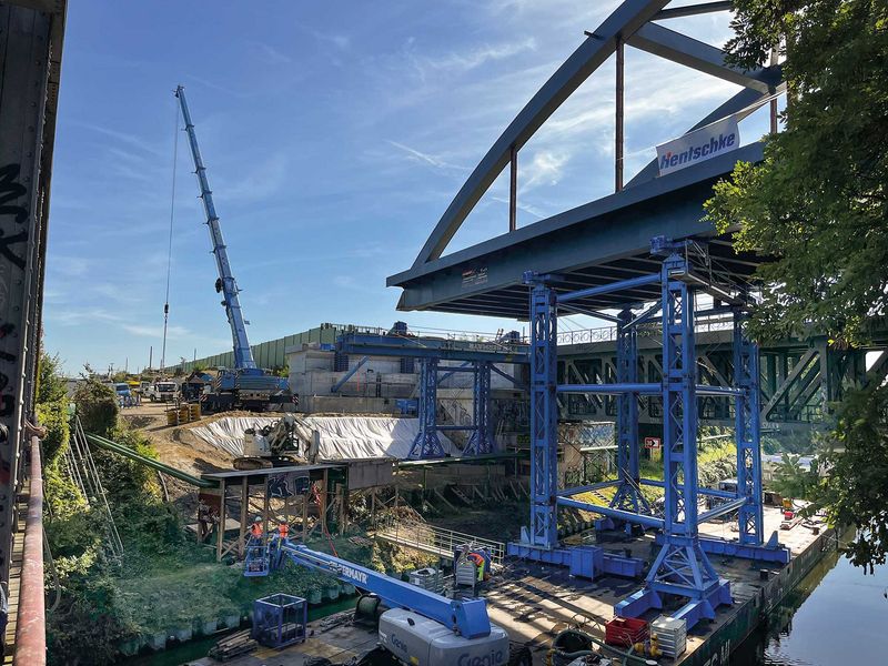 Mit dem Ausbau der „Dresdner Bahn“ will die Deutsche Bahn den Eisenbahnknoten Berlin entlasten und kürzere Fahrzeiten in Richtung Dresden sowie zum Flughafen Berlin Brandenburg ermöglichen. Um ein weiteres Etappenziel zu dessen Fertigstellung 2025 zu erreichen, wurde der Felbermayr-Bereich Engineered Solutions mit dem Einschub einer neuen zweigleisigen Stabbogenbrücke im Berliner Stadtteil Tempelhof betraut.