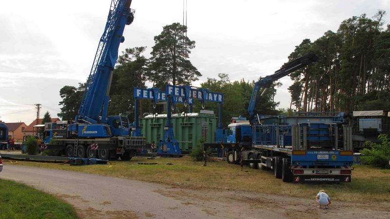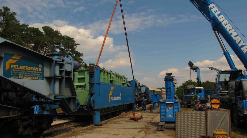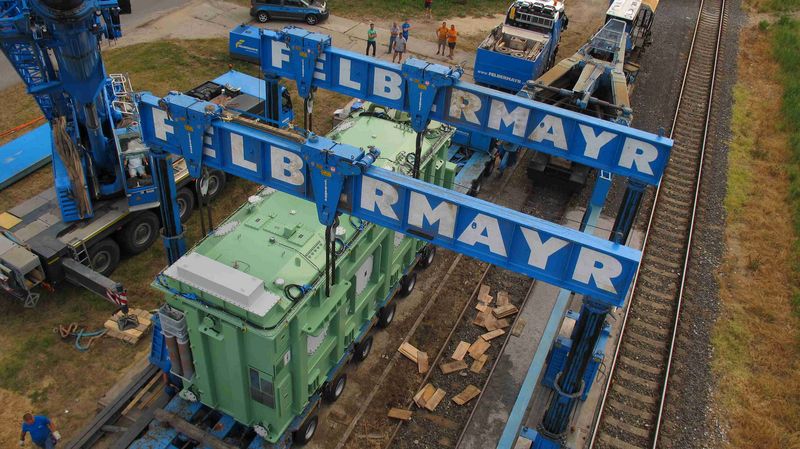 Für die noch verbleibenden 60 Kilometer bis zum Umspannwerk in Stupava musste mangels Schienenanbindung auf einen Tieflader umgeschlagen werden. Ein Vorgang, der von Mitarbeitern der Felbermayr Abteilung Einbringung mittels Hubgerüst realisiert wurde. Voraussetzung für den reibungslosen Einsatz der Kollegen aus Linz war allerdings die Herstellung der erforderlichen Infrastruktur vor Ort. "Diese lokale Organisation wurde durch die Mitarbeiter des ITB Standortes in Prag sichergestellt - sie veranlassten unter anderem das Verdichten des Untergrundes und ließen Stahlplatten verlegen, um den statischen Anforderungen gerecht zu werden", berichtet Grabuschnigg.