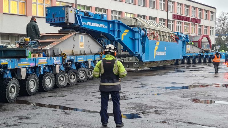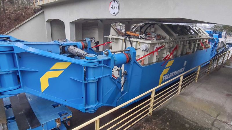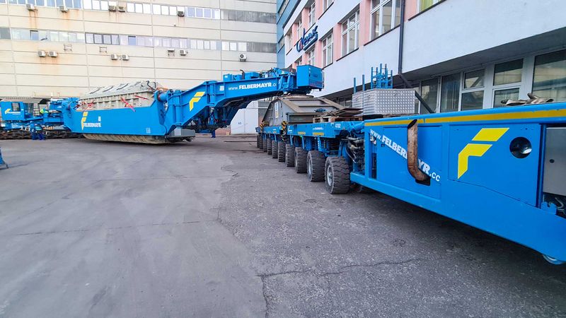 Ausgangsort für den Bahntransport des etwa zwölf Meter langen Spannungswandlers war ein Werk in Łódź. Das Ziel war ein nordwestlich davon gelegenes Umspannwerk in Pątnów. „Der Bahntransport sei im Bereich der üblichen Anforderung gelegen“, erzählt Świercz, der mit Grabuschnigg und Wolfgang Schellerer die Geschäftsführung in Polen bildet. So konnte der 20-achsige Tragschnabelwagen mit Durchladeträgern den Trafo innerhalb weniger Tage zum Zielort transportieren. Dort begann jedoch ein technisch fordernder Prozess: „Aufgrund der eingeschränkten Platzverhältnisse konnten wir den Transformator nicht wie üblich in Gleisachse von der Bahn auf die Straße umsetzen, dafür reichte die Länge des Bahngleises nicht aus“, merkt Świercz an und weist auf einen aufwendigen Arbeitsvorgang unter Einbeziehung zweier Selbstfahrer (SPMT) hin. Demzufolge wurde die Möglichkeit des transversalen Fahrens der Selbstfahrer genützt. Der Umsetzvorgang erfolgte letztlich im 90°-Winkel. Während die hintere Wagenhälfte des Tragschnabelwagens am Umsetzgleis nachschob, rollte an der Spitze der Selbstfahrer im 90°-Winkel zum Gleis Richtung zweitem Absetzpunkt. Dort angekommen wurde die hintere Seite umgesetzt, sodass die Straßengarnitur komplett war. Für diese Arbeiten stand ein knappes Zeitfenster von wenigen Stunden zur Verfügung, um den Betrieb am Anschlussgleis nur kurz zu blockieren. Dank guter Planung seitens Świercz und „Method statement“ konnten die zeitlichen Anforderungen erfüllt werden. „Dennoch, das war eine Challenge“, kommentiert Świercz den Vorgang dieses speziellen Umsetzverkehrs, der nur etwa alle zehn Jahre nötig ist und diesmal eben auch noch unter großem Zeitdruck stattfinden musste.