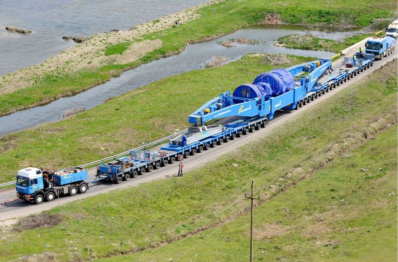 Zu Beginn wurde die Turbine im Hafen von Constanta auf den SPMT umgeschlagen und auf ein Flachdeckponton gerollt. Im Anschluss ging es auf der Donau in die rund 210 Kilometer entfernte Stadt Oltenita. Das sei die einzig technisch machbare Lösung gewesen, meint Costea und weist auf die Abmessungen der Turbine hin: "Mit einer Breite und Höhe von rund sechs Meter und einer Länge von fast 13 Meter war es in diesem Fall notwendig den Verkehrsweg Straße zu umgehen".