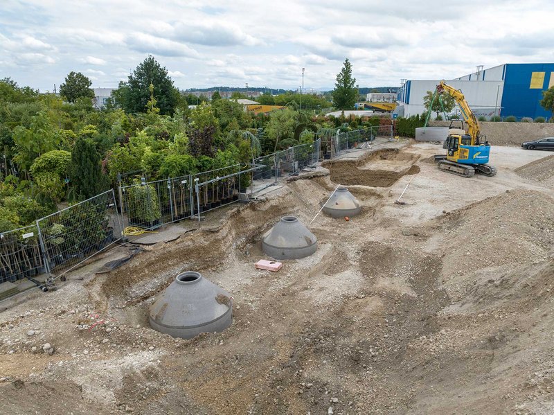 Ein weiteres zentrales Bauvorhaben der Gärtnerei stellt der Anschluss an das Fernwärmenetz des Energieversorgers eww dar. Damit setzt das Welser Familienunternehmen auf eine nachhaltige Energieversorgungund reduziert den Einsatz fossiler Brennstoffe. Die Abteilung Felbermayr- Infrastruktur verantwortet den Aushub der dafür erforderlichen Künette. „Für den neuen Fernwärmeanschluss graben wir eine 124 Meter lange und 1,20 Meter tiefe Künette. Die Zeit läuft, denn bis Anfang Oktober muss die Gärtnerei angeschlossen sein“, schildert Martin Jellen, Bauleiter Tiefbau Österreich.