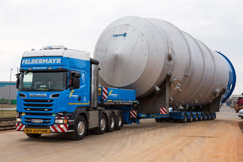 Aufgrund ständig steigender Bevölkerungszahlen wächst auch der Bedarf an Düngemitteln. Ein Umstand, dem der ungarische Düngemittelhersteller Nitrogénmüvek Zrt mit der Erweiterung seiner Produktionsanlagen Rechnung trägt. Auftraggeber für die Schwertransporte war das auf Logistikdienstleistungen spezialisierte Transportunternehmen DB Schenker. Von ihm seien die Komponenten auch im belgischen Hafen Antwerpen übernommen und per Binnenschiff bis in den ungarischen Donauhafen Gönyű transportiert worden, erklärt Günter Kaspar von der Felbermayr- Schwertransportabteilung. Ein weiteres Schiff, mit bis zu 20 Tonnen schweren Kleinteilen, hat über den Donauhafen Konstanta in Rumänien Gönyű angefahren.