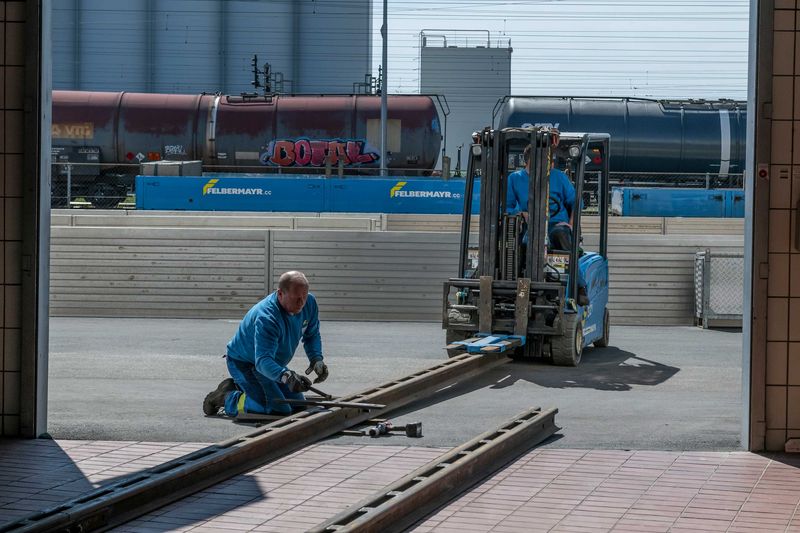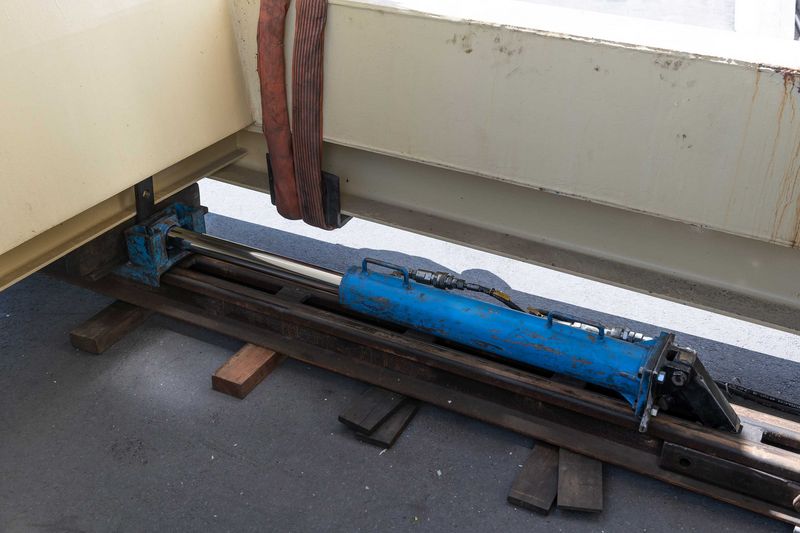 Die jetzt eingebaute neue Presse wurde bereits im Vorjahr angeliefert, dann allerdings vorerst einmal zwischengelagert. „Im Februar dieses Jahres brachten wir sie zum Standort, wo finale Vorbereitungen für den Einbau der Presse durchgeführt wurden“, blickt Herbert Gruber, von der Niederlassung Linz zurück. Als Leiter der Abteilung Einbringung war er maßgeblich an der Ausarbeitung dieses Projektes beteiligt. Zum Einsatz kam dafür ein spezielles Hubgerüst mit vier Stempel und einer jeweiligen Hubkraft von maximal 50 Tonnen. „Das Besondere an diesem Hubgerüst ist die schmale Bauform. Dadurch kann es auch unter besonders beengten Platzverhältnissen zum Einsatz kommen“, sagt Gruber und erklärt weiter: „Um die 25 Tonnen schwere Presse vom 2,6 Meter hohen Fundament heben zu können, wurden je zwei Stempel vor und hinter der Presse aufgestellt. Mittels zweier auf den Hubgerüsten montierter Kopfträger haben wir dann die 6,6 Meter lange und 3 Meter breite Maschine vom Fundament gehoben und auf einem Schienenverschubsystem abgesetzt.“ Da eine Bandpresse den Weg zur Ausfahrt versperrte und ein Abbau dieser Presse nur mit hohem Aufwand bewerkstelligt hätte werden können, wurde dieses Hindernis mit dem Schienensystem umfahren. „Währenddessen haben wir an der neuen Presse finale Montagearbeiten durchgeführt“, schildert Gruber.