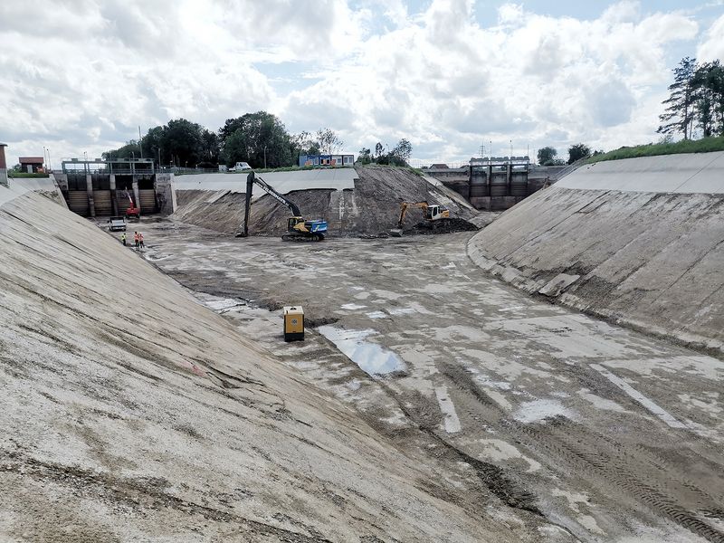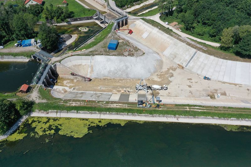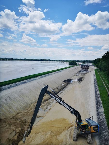 „Unsere Aufgabe war es, ein Konzept zu entwickeln und umzusetzen, um die Stand- und Betriebssicherheit für mindestens 50 weitere Jahre zu gewährleisten, sodass keine weiteren Abstellungen beziehungsweise Dammsanierungen in diesem Bereich mehr notwendig sind“, fasst Pieringer den Auftrag zusammen. Doch schon die Baustellenaufschließung war problematisch. So war die zum Sanierungsbereich führende Brücke nur bis zu einer Traglast von neun Tonnen befahrbar. Notwendig war aus baubetrieblichen Gründen eine Befahrbarkeit für „SLW 60“ (Schwerlastwagen mit 60 Tonnen), sodass vom Bauherren vorgesehen war, zunächst in zweiwöchiger Arbeit einen Überfahrtdamm zu errichten. Weiterhin war – um das Baufeld trocken legen zu können – im Unterwasser ein sogenannter Fangedamm mit Oberflächenabdichtung nötig. Von diesem wurde auch über eine Rampe die Zufahrt zur Baustelle möglich gemacht. Um das bewerkstelligen zu können, war zudem die Wiederherstellung eines ein Kilometer langen Dammhinterweges notwendig. Erst dann konnte mit den eigentlichen Arbeiten der Dammsanierung begonnen werden.