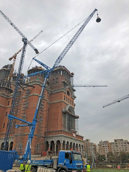 Trotz aller technischen Möglichkeiten – spannend bleibt es bis zu Letzt. „Es ist vorab nicht klar, ob sich die Praxis auch wirklich an die Theorie hält“, sagt Puscoiu. Auch sei die Sicherheit der Mitarbeiter immer mitzubedenken und habe Vorrang vor allem Anderen. Dank der akribischen Vorbereitung und der Erfahrung aller beteiligten Personen gelang es jedoch, den Hub mit einer Hakenhöhe von rund 80 Metern simulationsgetreu durchzuführen. Das Einheben der vier weiteren Glocken war dann im Verhältnis zum großen Bruder ein „Glockenspiel“. Zusammen mit der größeren Glocke wiegen sie rund 33 Tonnen und bilden ein Monumentalgeläut.