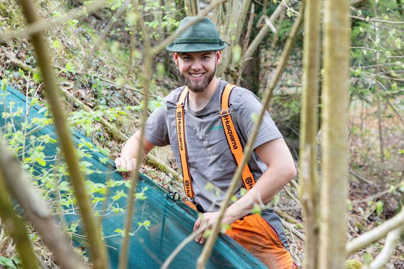 Öllinger erläutert das Vorgehen zur Umsiedlung: „Es müssen im Vorfeld die Amphibien und Reptilien, wie zum Beispiel Frösche, Eidechsen und Schlangen, abgesammelt werden. Das erfolgt mit der sogenannten temporären Zaun-Kübel-Methode.“ Dafür wurden die rund 13 Kilometer langen Amphibienschutzzäune um die Baufelder und entlang der Baustraßen errichtet und das Areal in kleinere Abschnitte unterteilt. Der Zaun, bestehend aus einem speziellen Kunststoff-Gewebe, hat eine fertige Höhe von 45 Zentimetern. „Das Gelände stellt uns dabei immer wieder vor Herausforderungen“, so Öllinger.