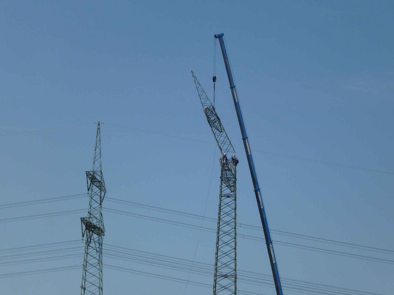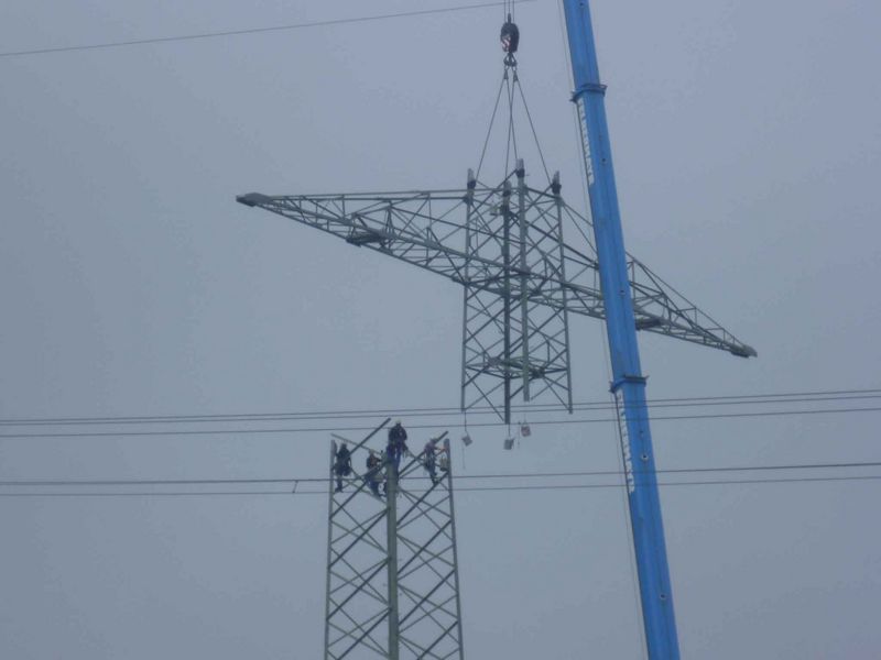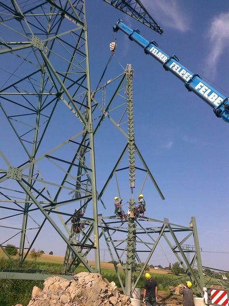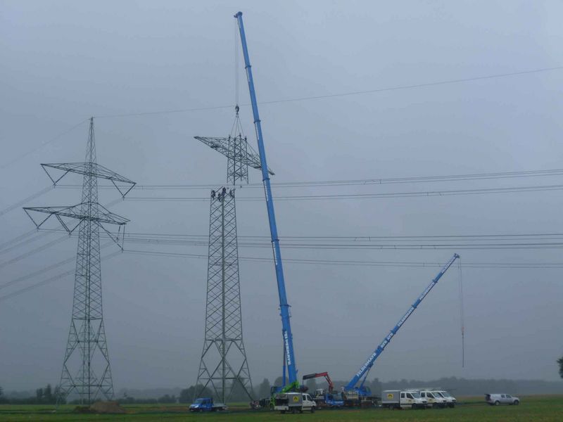 „Die Bauarbeiten der LTB Leitungsbau GmbH und Alpine Deutschland GmbH in der Lausitz/Sachsen haben bereits im Juli begonnen und werden sich über zwei Jahre erstrecken. Dabei werden 106 Stahlgittermasten errichtet“, erklärt Dunja Wolski von der Felbermayr – Niederlassung Bautzen. Die einzelnen Stahlteile werden am Boden zu bis zu 30 Tonnen schweren Einzelteilen vormontiert und dann eingehoben. Für die 55 Meter hohen Masten kommen dafür Krane mit bis zu 200 Tonnen maximaler Traglast zum Einsatz. Die Bauzeit für einen derartigen Mast beträgt rund 1,5 Tage.