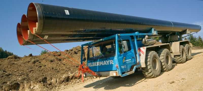 Die insgesamt 4.000 Rohre wurden von Salzgitter per Bahn bis nach Kapfenberg transportiert und dort zwischengelagert. Für den Transport zur Baustelle wurden je fünf Rohre mit einem speziellen Bagger auf einen Lkw umgeladen. "Das verladen der Rohre erfolgt mit speziellen Vakuumhebegeräten", sagt Dietzel. Das sei sicherer und erfordere auch weniger Zeit als das umschlagen mit Ketten. Das Abladen auf der Baustelle erfolgt ebenfalls wieder mit einem "Vakuumbagger". Ergänzend zu den Eigenentwicklungen in Sachen eingesetzter Technik, sitzt auch bei den Mitarbeitern jeder Handgriff und so sind die Rohre innerhalb weniger Minuten auf ein geländegängiges Spezialfahrzeug verladen.