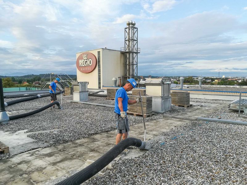 Im September kam im Zuge von Aufstockungsarbeiten bei einem Marchtrenker Lebensmittelhändler ein Saubagger der Welser Abteilung Umwelt und Ressourcen zum Einsatz. Dabei wurden in einem Zeitraum von eineinhalb Tagen in etwa 15 Metern Höhe ungefähr 50 Kubikmeter Dachbekiesung abgesaugt und anschließend dem Recyclingverfahren zugeführt. „Durch die Inanspruchnahme des Saugbaggers war ein staubfreies Absaugen möglich und es konnten durch die äußerst effiziente Arbeitsweise Bauverzögerungen vermieden werden“, nennt Günter Zehetmair wesentliche Gründe für den Einsatz des Saugbaggers.