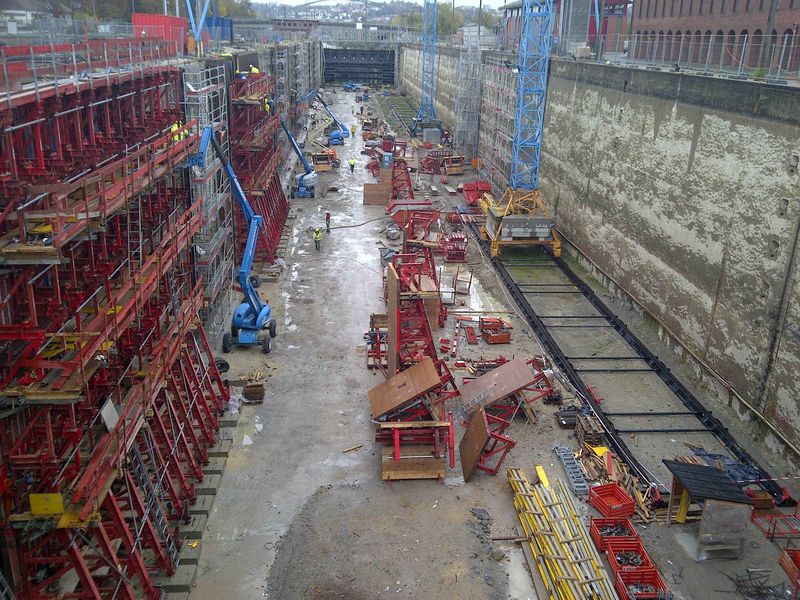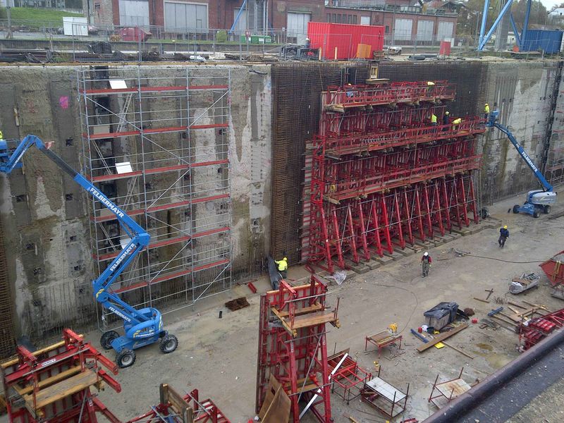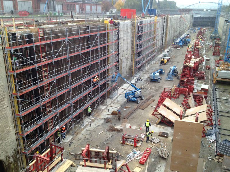 Im kommenden Sommer soll die Baustelle abgeschlossen werden. Bis dahin sind noch etwa 6.100 Quadratmeter Schalung für die Errichtung der Vorsatzschalen aufzustellen und auszubetonieren. Dafür werden etwa 4.700 Kubikmeter Beton und 1.100 Tonnen Bewehrung verbaut.