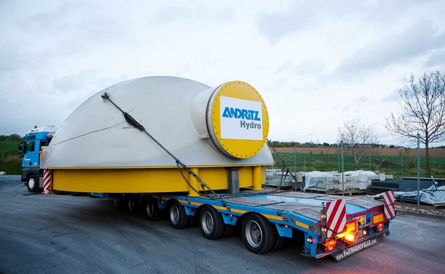 Schwertransport für größtes Laufkraftwerk Deutschlands