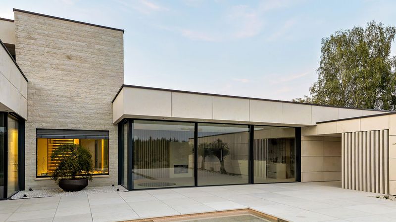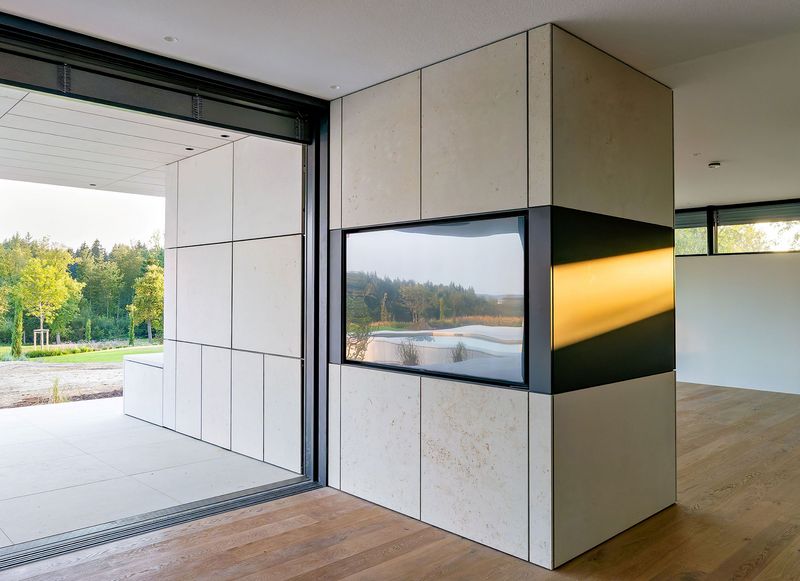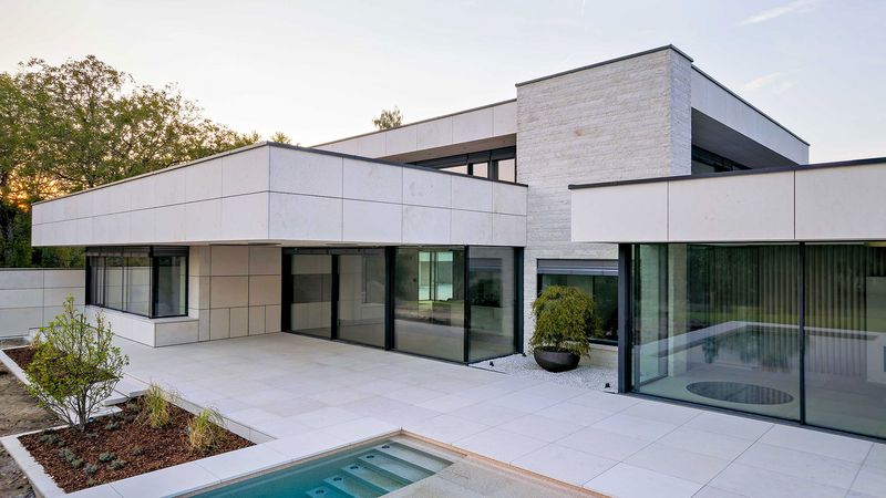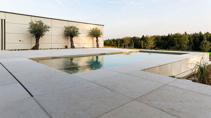 Das Projekt von West-Asphalt beeindruckte mit rund 1.200 Natursteinplatten mit bis zu 230 Kilogramm Gewicht, die auf insgesamt 46 Fassadenflächen millimetergenau platziert wurden. Sowie weitere 300 für Böden im Innen- und Außenbereich. Nahezu jede Platte ist ein Unikat, das nach den Vorstellungen des Bauherren computergestützt visualisiert und am Abbauort in Bayern maßangefertigt wurde. „Naturstein gewinnt in der modernen Architektur zunehmend an Bedeutung. Der natürlich vorkommende Baustoff gilt als besonders ressourcenschonend, robust und witterungsbeständig. Zudem verleiht er Objekten eine besonders edle Optik“, erklärt Projektleiter Bmstr. Ing. Reinhold Wersching von West-Asphalt. Zusätzlich gestalteten die Steinhandwerker 21 Natursteinstelen als Sichtschutz, sowie die Beplankung eines Garagentores und einer Outdoorküche.