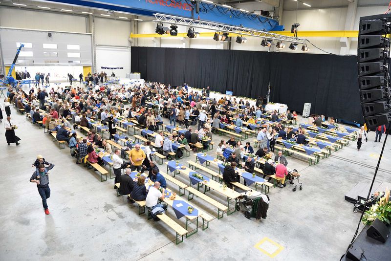 Конфигурациите на превозните средства за промишлени компоненти с тегло няколкостотин тона обикновено се сглобяват с болтове в залата за преустройство с площ 2000 квадратни метра. Той предостави чудесна обстановка за юбилея на компанията в два аспекта.