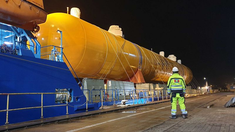 Общо 26 тежкотоварни океански кораба с около 19 000 тона товари трябваше да бъдат разтоварени от октомври 2020 г. насам, предимно в Шчечин, но също и в Свинемюнде и самата Полица. Това можеше да стане само с бордовите кранове на тежкотоварните кораби. Компонентите на системата бяха претоварени на специални RoRo кораби, понтони и баржи. „За тази поръчка ние бяхме отговорни не само за осигуряването на товарното пространство от морските пристанища до пристанището на завода. Бяхме отговорни и за съответната подготовка, както и за закрепването - т.е. обезопасяването на товара“, продължи Андреас Хефнер.