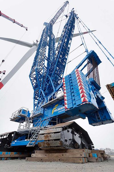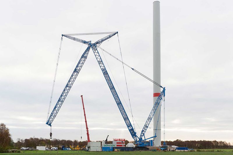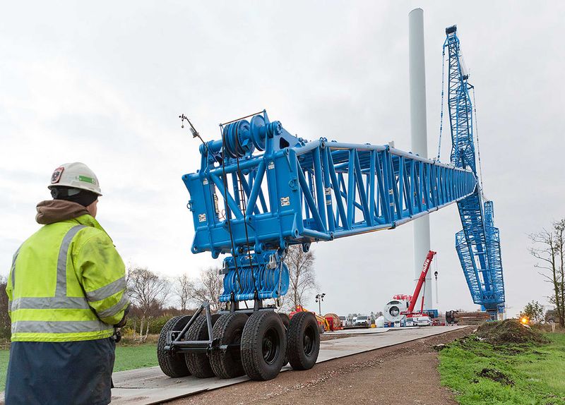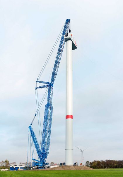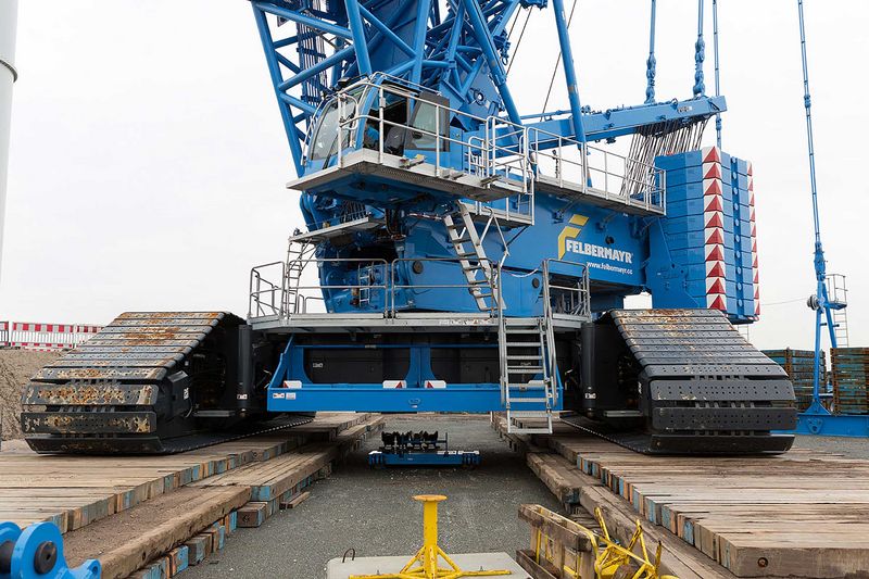 Již přípravné práce na akci ve městě Neuenwalde nechávaly tušit, že se chystá něco mimořádného. Bylo zapotřebí 42 těžkých transportů, aby se jeřáb LR11000 dostal na stavbu. Zatímco vyvažovací závaží o hmotnosti 12 tun na každou jednotku vypadala ještě poměrně kompaktně, z hmotnosti obou pásových podvozků, která činila 120 tun, už bylo zřejmě, jak velké rozměry zde budou přepravovány. Již samotná přeprava technicky vyspělého ocelového kolosu byla výzvou. „Jeřáb se na staveniště přesunul přímo z jiné akce v Rumunsku,“ říká Günther Wimmer z projektového oddělení společnosti Felbermayr a vysvětluje, jak celá logistika fungovala: „Po přesunu po silnici byly součásti jeřábu v přístavu Konstanca naloženy na námořní loď a převezeny do přístavu Bremerhaven. Poté byly kyvadlovou dopravou přesunuty na staveniště ležící ve vzdálenosti 42 kilometrů od přístavu. Čtyři přepravní jednotky tuto práci zvládly za šest dnů.“