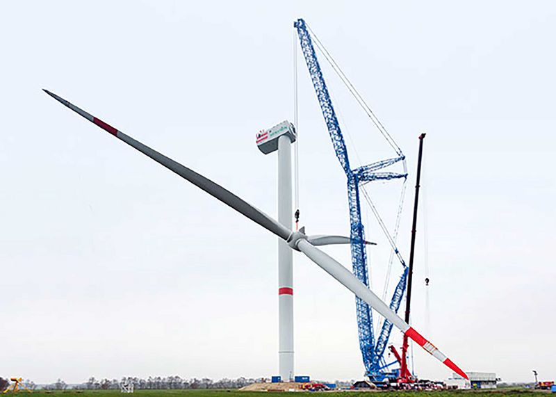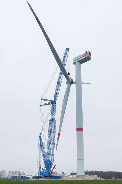 Velké finále pak nastalo v prosinci montáží rotoru. Nejprve byly tři lopatky o kusové délce 74,4 metru na zemi přimontovány k rotoru. Poté bylo nutné celou sestavu o hmotnosti 175,4 tuny zvednout do výšky 124 metrů. Pro milimetrově přesnou montáž rotoru do strojovny pak bylo zapotřebí know-how i technická preciznost: „Když pomyslíme, že vnější oběžný průměr lopatek činí 152 metrů, je jasné, jakou přesnost a šikovnost prokázal řidič jeřábu i celý montážní personál,“ říká Wimmer s respektem a oceňuje úspěšně dokončenou zakázku.