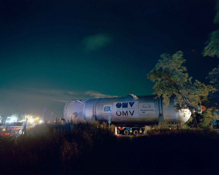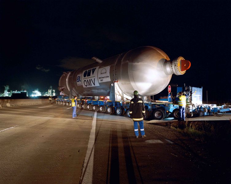 Further key parts of the journey to the OMV were the eastern thoroughfare in Mannswörth and the slip road on to the A4. Wimmer stated that cars continually parking along streets create uncertainty during heavy transport. Flyers were distributed in advance to avoid this. Wimmer also added, however, that the public were always very understanding and adhered to the required stop and parking instructions. At roughly 1am, the heavy transport drove onto the A4 using a temporary ramp, crossed the motorway and then proceeded to drive approximately a kilometre on the other side of the road in the direction of the Danube bridge. At this point, the heavy transport, which totalled 52 metres in length, left the motorway once more and reached the site of the OMV works approaching 2am.