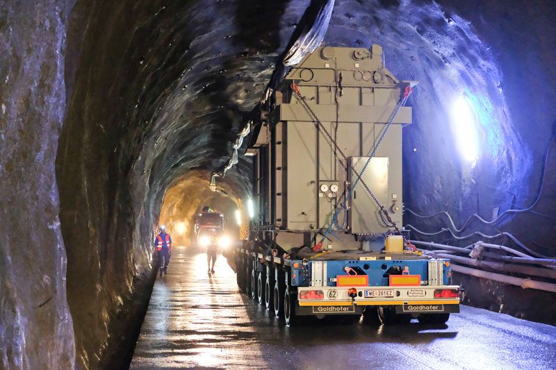 Things really got down to business on the last thirteen kilometres on the Silvretta-Hochalpenstraße. “We had to cope with gradients of twelve percent. But that was not the real problem,” says Ammann. Even more demanding were transverse tilts of up to nineteen percent and narrow curve radii. That was also the reason for using the PST. At 2.5 metres other vehicles would have simply been too wide. Ammann adds: “That would not have been enough for the high centre of gravity during transport and would have massively increased the risk of tipping over.” That's why the decision was made to opt for the three-metre-wide PST. More stability could thus be achieved. At turn 24, the transports left the high alpine road, which is also appreciated by tourism. What followed was the entrance to the cavern and about 1,000 metres of tunnel ride to the power house. Gradients of up to 15 percent had to be overcome in the process.