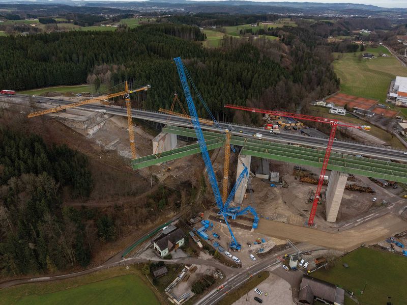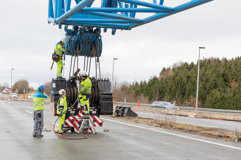 There were already scores of onlookers pulling out their smartphones during its installation on the motorway heading towards Vienna at the beginning of February. The press then got wind of it too: “Major construction work is underway on the West Autobahn near Regau” or “Steel behemoth pushes bridge construction site” were headlines in regional and national media shortly thereafter. He hadn't expected so much fanfare, says Michael Lehner, project manager for transport and lifting technology. However, he could understand the excitement surrounding "Big Blue": “We typically use the LR 11000 in wind farms or in industry. You don't normally get that close to a crane that big”.