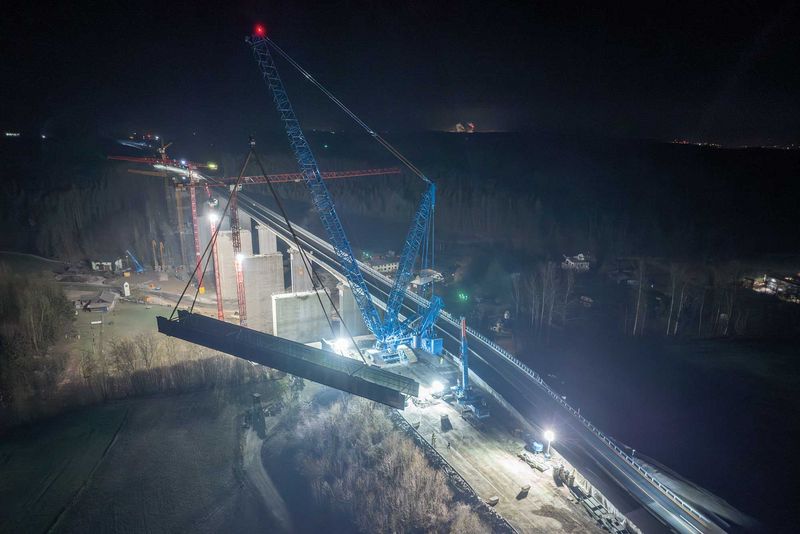 When the last steel girder was safely set down on the former hard shoulder early on Saturday morning, the job was finally done. Michael Lehner is clearly satisfied: “Ultimately, every lifting operation worked well. The ongoing coordination effort with the customer was excellent at every level - a challenging but enjoyable job at our doorstep, so to speak.”