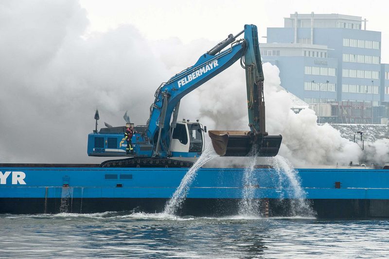 Finally, Austria's Supreme Shipping Authority instructed that the ship, on which the fire had now been extinguished and which was now secure, be transferred around 15 kilometres to the tanker port upriver in Linz. In the opinion of the emergency services, without the spontaneous rescue efforts of the Felbermayr crew, it could not be ruled out that even greater damage – with environmental implications – would have occurred. However, Feirer and his colleagues from hydraulic engineering are looking upon it very pragmatically: "According to the Wasserstraßen-Verkehrsordnung (Waterways Traffic Regulations), it is our legal obligation to provide assistance." Be that as it may, the quick-wittedness and talent for improvisation demonstrated by the "dredger's team of firemen" in using the excavator shovel most definitely contributed to the effective extinguishing of the fire.