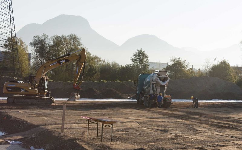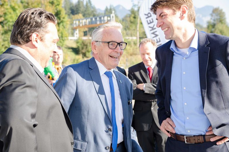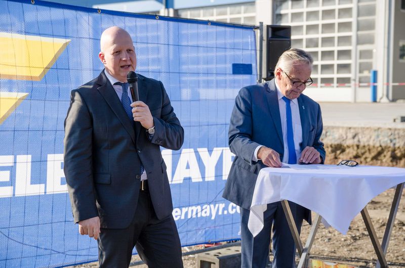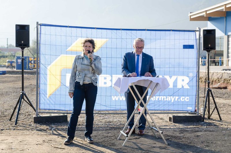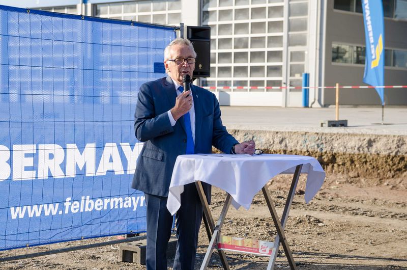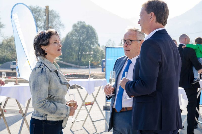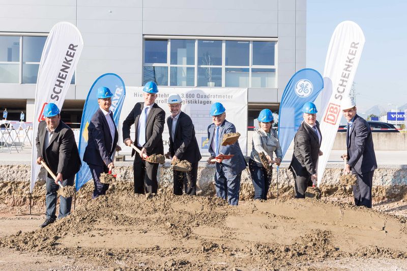 It's all systems go for the new dispatch warehouse and machine depot in Wörgl: Alexander Winter, Member of the Board at DB Schenker in Austria and Southern Europe, Josef Schneider, Branch Manager of DB Schenker in Kufstein, and Martin Mühlbacher, Global Supply Chain and Site Manager of GE in Jenbach, are meeting today with Horst Felbermayr, the building contractor and logistics partner from the crane hire and heavy transport company of the same name, Wolfgang Schellerer, Felbermayr's Managing Director, Robert Bauer, Head of the Felbermayr subsidiary in Wörgl, and Hedwig Wechner, the mayor of Wörgl, for the groundbreaking ceremony of the new 3600-square-metre logistics warehouse.