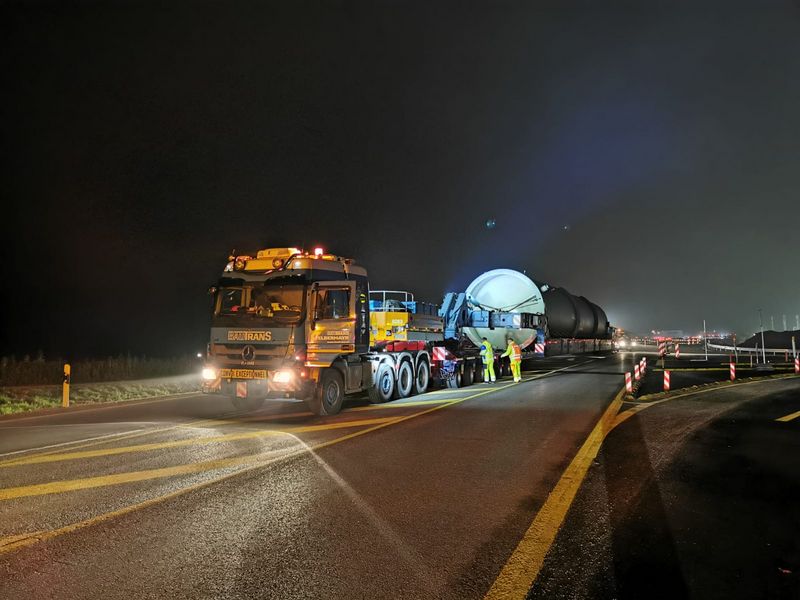 Sixteen pressurised heat accumulators were transported for the Cottbus municipal co-generation power station in Lusatia. The plant is to be converted from pulverised lignite combustion to gas operation. The transport distances of around 550 kilometres led from the manufacturer "Krämer Industriebehälter" in Rain am Lech to the power station in Cottbus. "In summary, the journeys went well - pretty much as we had imagined", says Markus Meusburger, head of the transport department, satisfied.