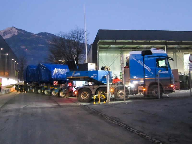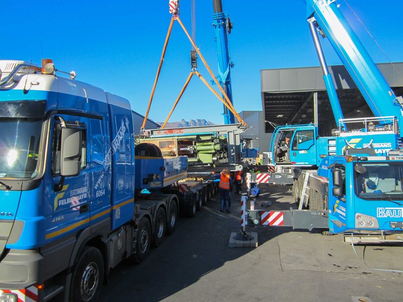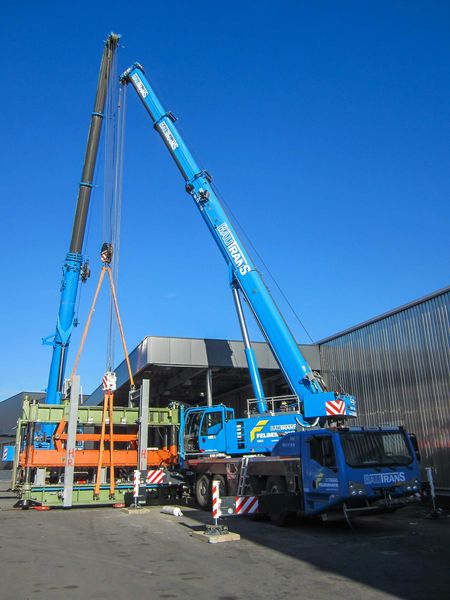 Stegmann happily reports that – in addition to the client’s participation and willingness to cooperate – the firm’s cooperation with subsidiary Bau-Trans turned out great. Thus, in Switzerland, the press was lifted onto a flatbed lorry provided by Bau-Trans’ Lauterach branch by means of a crane deployed by Liechtenstein branch. Bau-Trans’ Budapest branch stood at the ready with its lifting equipment to unload the component in Hungary.