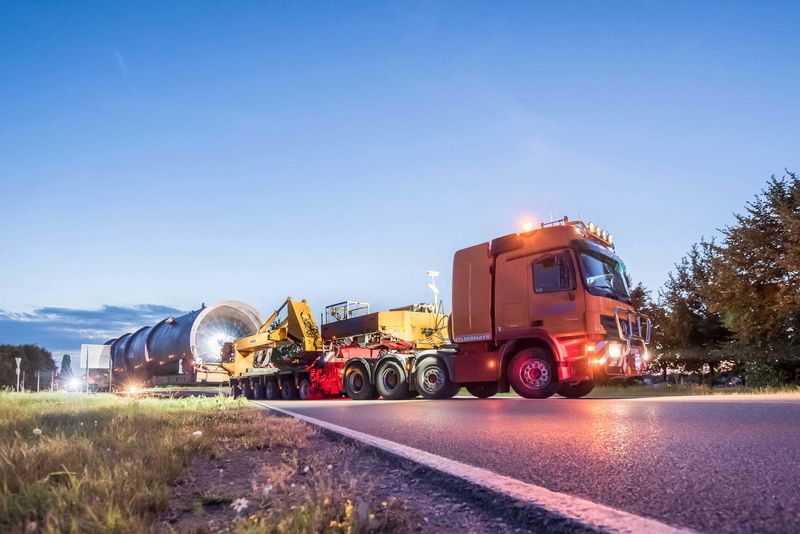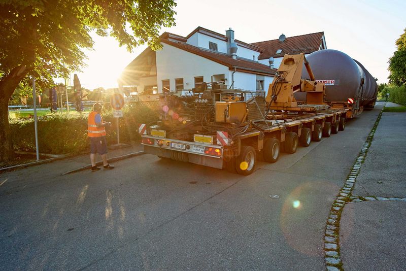 Due to these enormous dimensions, the 500 kilometre route was tackled using a so-called lift lever vessel bridge. "Using this special low-bed vehicle, heavy goods with these dimensions can be driven under bridges, for example, as well as over guide rails and around tight bends," explains Andreas Mathis of Bautrans. This vehicle combination reached a total length of around 64 metres. The destination of these transports was Magdeburg. The containers are needed there as part of a thermal energy storage system for the district heating supply.