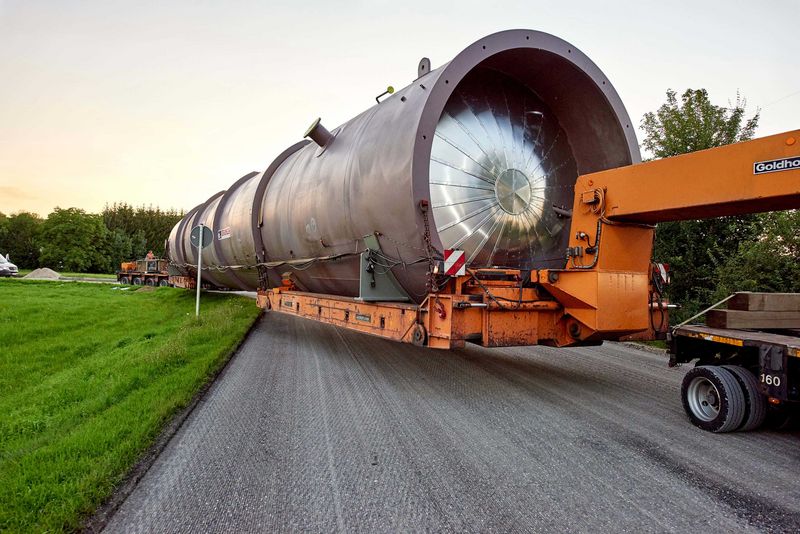 At the end of July, Felbermayr's subsidiary Bautrans completed nine transports of as many containers. The vessels weigh 85 tons and are 30 metres in length, with a diameter of 4.3 metres.