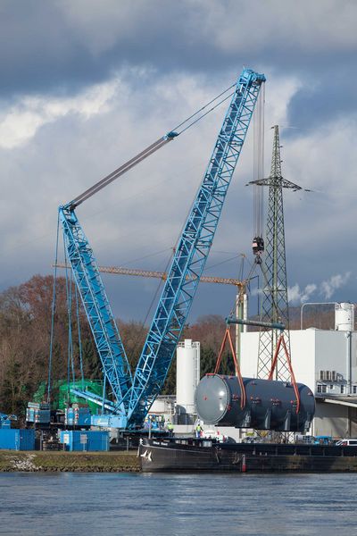 A crawler crane was used to transship the autoclaves from the ship onto two flat bed trailers in Aschach an der Donau.