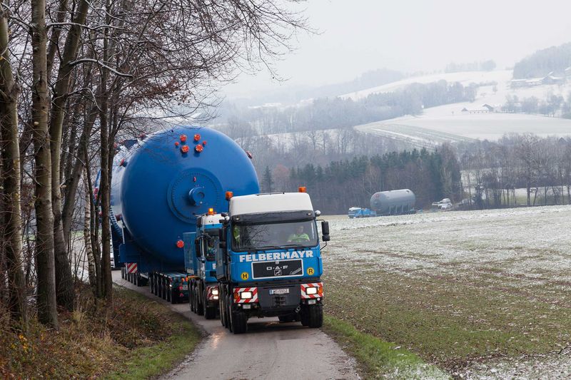 In late November 2017, Felbermayr transported two so-called autoclaves from Aschach an der Donau to their two destinations in the Innviertel region on commission from an aeroplane manufacturer.
