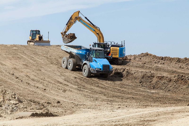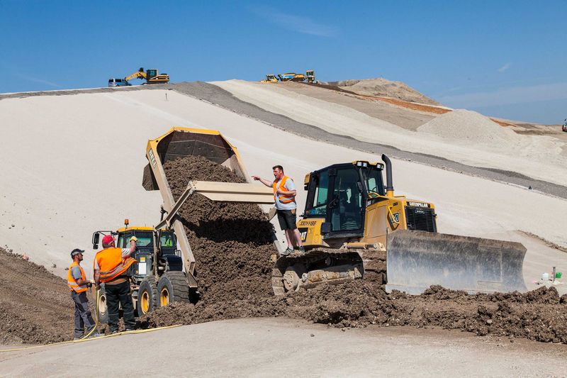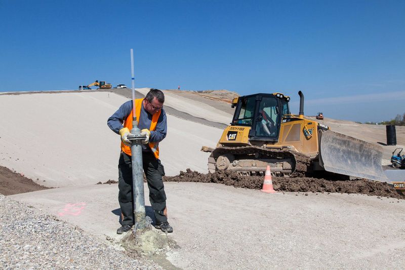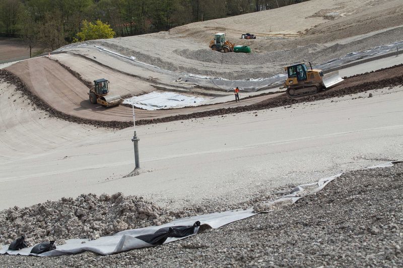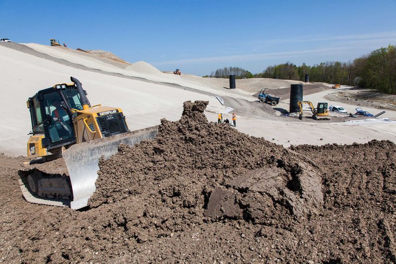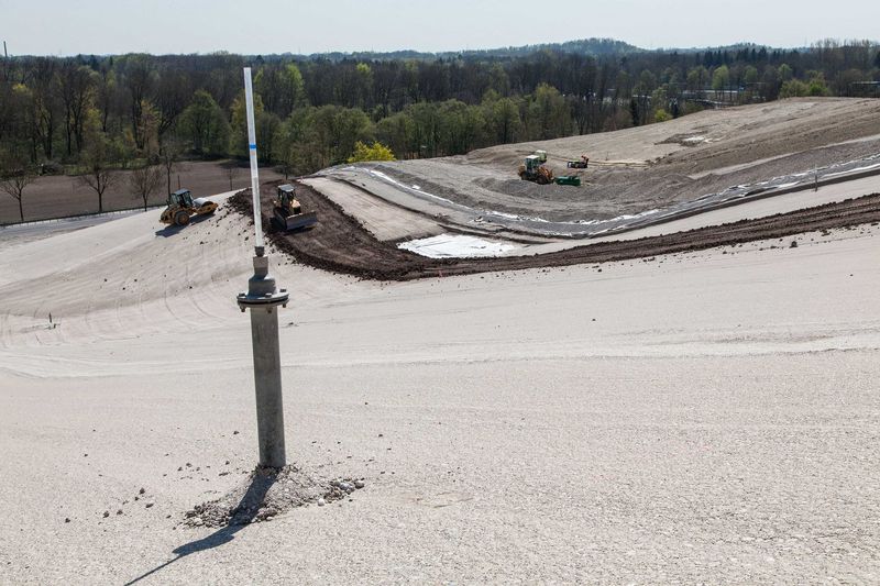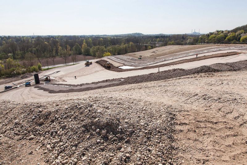 “35 pieces of heavy equipment are currently in use”, says construction manager Thomas Henninger of Hagn Umwelttechnik. The offer ranges from articulated dump trucks with a capacity of 20 cubic metres to 15-ton rollers, GPS-controlled excavators and caterpillars as well as mobile crushers for the creation of required drainage material on site. A mixing plant for the production of Bentokies was also erected. “This material is at the heart of the seven layers forming the new dump sealing”, Henninger explains. Bentokies consists of a clay mineral mix occurring in nature that is being refined using gravel. The material is impervious to water and possesses good swelling capacities. “Thus, cracks resulting from ground movement can be filled automatically without requiring the use of machinery”, Henninger explains the benefits of this innovative building material. The first of seven layers on top of the dump, however, is an equalising and base layer made from sewage sludge ash. On top of this is laid a capillary-breaking layer made from mineral material and on top of that the actual sealing made from two layers of Bentokies. A drainage layer made from gravel which discharges the arriving surface water in a controlled way is laid on top of this layer. The revegetation layer follows and builds upon the drainage layer and consists of highly compressed gravel which functions as a barrier for plant roots as well as virgin and surface soil. “This layer thickness was chosen to prevent roots from once again breaking through the sealing”, Henninger explains. Most of the materials used are so-called substitute dump construction material such as used track ballast, construction waste and road scarification material. This is possible due to the fact that the sealing layer reliably seals everything underneath. Greening constituted the last work step. In its course, the area’s subsequent use as local recreation area is being comprehensively incorporated.