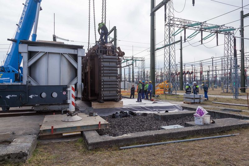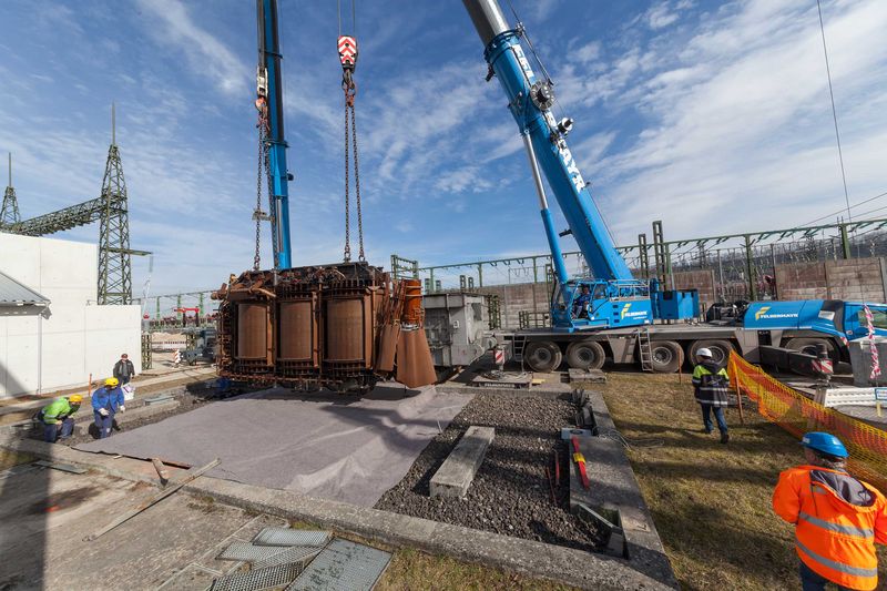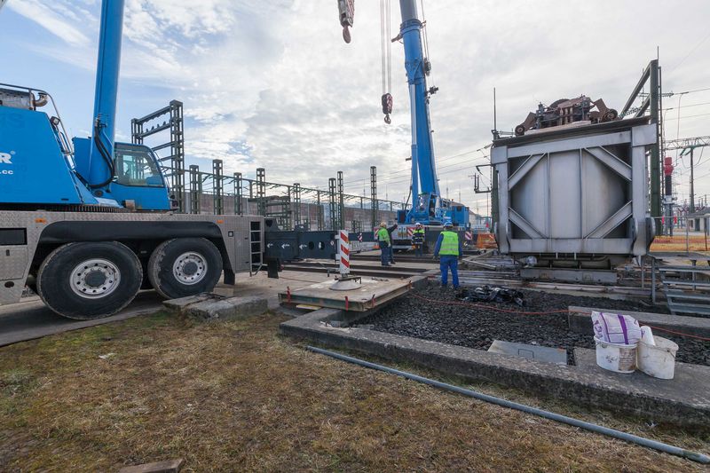 The Austrian Power Grid substation at Ernsthofen, in Lower Austria, is one of four key network nodes in the Austrian power supply grid. A transformer that was 50 years old was removed at the end of February. In order to keep transport costs to a minimum, the voltage transformer had to be split into its component parts on the transformer base.