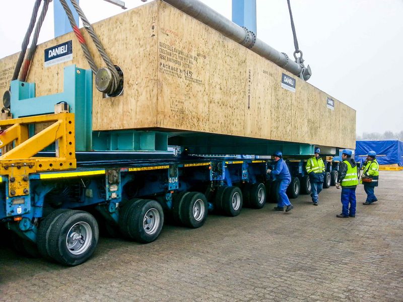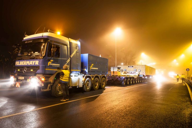 Ein weiterer Konvoi bestehend aus zwei Transporten folgte Mitte Januar und konnte ebenso planmäßig durchgeführt werden. Zum Einsatz kommen werden die schwergewichtigen Teile für ein neues Warmwalzwerk. Auftraggeber für das Transportprojekt ist das italienische Maschinenbauunternehmen Danieli.