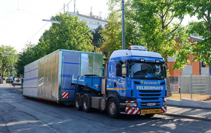 Transportul a 210 module pentru spitalul Wilheminenspital din Viena a durat din martie până în august. Punctul de plecare pentru modulele măsurând până la 18,5 m lungime, 5,9 m lăţime şi 4 m înălţime a fost fabrica specialistului de spitale „la cheie” Cadolto din Carlsberg (Danemarca). „Un total de douăsprezece combinaţii de vehicule au fost utilizate pentru transportul modulelor, în greutate de până la 38,5 tone. În acest scop, s-au utilizat unităţi tractoare pentru sarcini grele, cu 4 punţi, cu diferite configuraţii ale platformei”, explică managerul de proiect Roland Füreder de la departamentul Transport al Felbermayr din Wels.