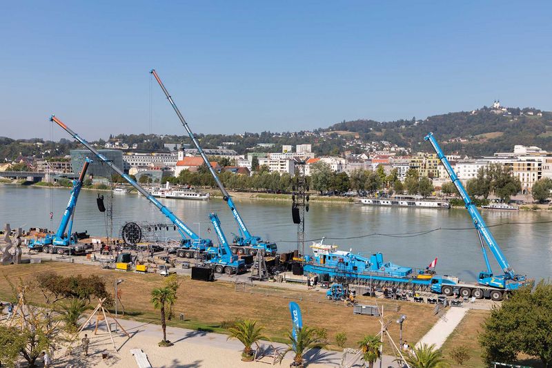 Či už ide o auto, ktoré sa zdanlivo beztiažovo vznáša vo vzduchu, vznášajúcu sa sieť ľudí vo výške 40 metrov alebo gigantické ruské koleso – multimediálna produkcia v lineckom Donauparku so symbiózou hudby, vizuálnych efektov a techniky každoročne poteší tisíce návštevníkov všetkých vekových kategórií. Od roku 2006 zohrávajú ťažkotonážni pomocníci nebesky modrej flotily a ich „dirigenti“ vedúcu úlohu – v pravom zmysle slova. Vedúci projektu spoločnosti Felbermayr Florian Katzinger, Hans Wolfsteiner a Petar Trivkovic poskytujú pohľad do zákulisia tohto brilantného predstavenia.