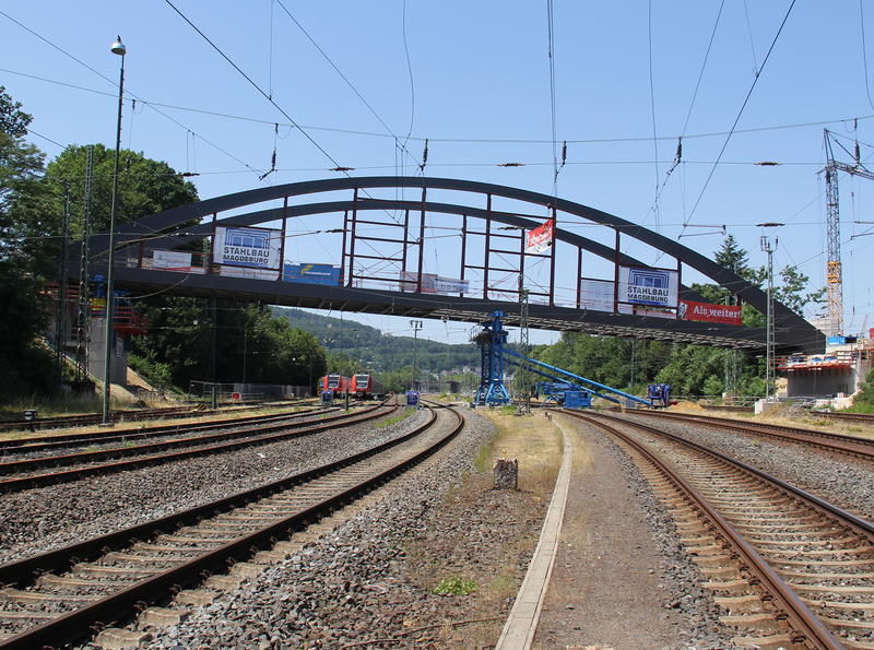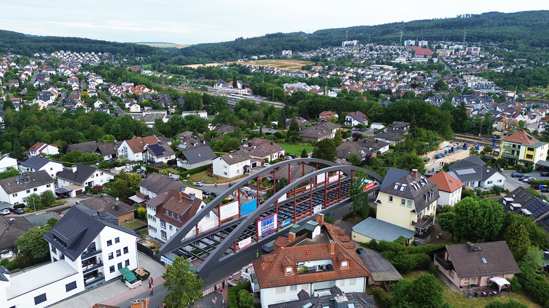 Dňa 1. júla stálo pozdĺž ulice Wießbadener Straße v obci Niedernhausen v spolkovej krajine Hessensko v pozore množstvo fotoaparátov a smartfónov: Napokon, nie každý deň sa sunie 73-metrov dlhý a 12-metrov vysoký oceľový oblúkový most tesne popri domoch a vznáša sa pomaly ponad ploty záhrad.