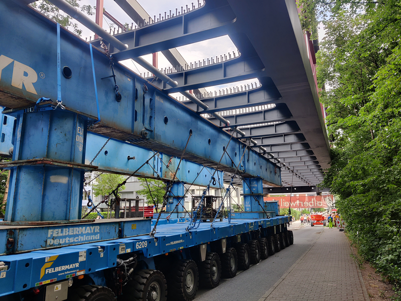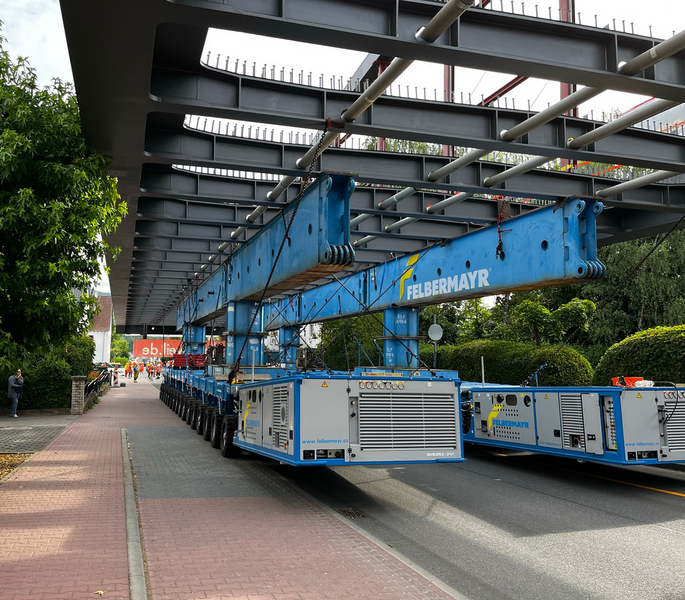„Na mieste montáže mimo obce sme most pomocou hydraulického „stohovacieho“ zdvíhacieho systému nadvihli do výšky približne štyri a pol metra a obidva samočinné transportéri SPMT, každý so 16 nápravami a nadstavbami sme umiestnili pod most. Most sme vzhľadom na jeho šírku 12,5 metra tak vysoko prepravovali preto, aby jeho dolná hrana mohla byť vedená ponad ploty záhrad“, objasňuje Kees Kompier, vedúci úseku spoločnosti Felbermayr, z tímu Engineered Solutions. Na prepravnej trase dlhej 500 metrov bolo treba vopred osekať len niekoľko konárov a kríkov.