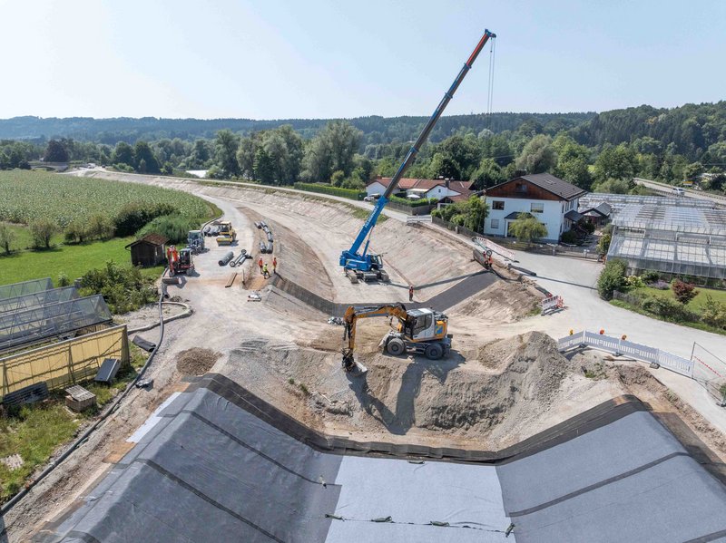 Používa sa niekoľko výkonných strojov, z ktorých všetky sú tankované pomocou HVO: 15-tonové mobilné rýpadlo, 25-tonové pásové rýpadlo, 29-tonové rýpadlo s dlhou rukoväťou a teleskopický pásový žeriav. Dodatočná nádrž na stavenisku a nálepky HVO na všetkých zariadeniach kompatibilných s HVO zaisťujú praktický prívod paliva na stavenisku. Implementácia je presvedčivá nielen z technického hľadiska, ale aj z organizačného hľadiska. „S HVO je možné udržateľné opatrenia tam, kde je obzvlášť dôležité — na stavenisku, v každom stroji, pri každom tankovaní,“ zhrnul projekt manažér lokality Martin Höpp. Pre neho je jasné: „Najmä v takom dôležitom projekte, ako je povodňová ochrana na kanáli Loisach-Isar, použitie HVO ukazuje, že ochrana životného prostredia a stavebná prax môžu ísť ruka v ruke. Ide o implementáciu praktických riešení, ktoré majú okamžitý účinok — a to bez zložitých úprav.“